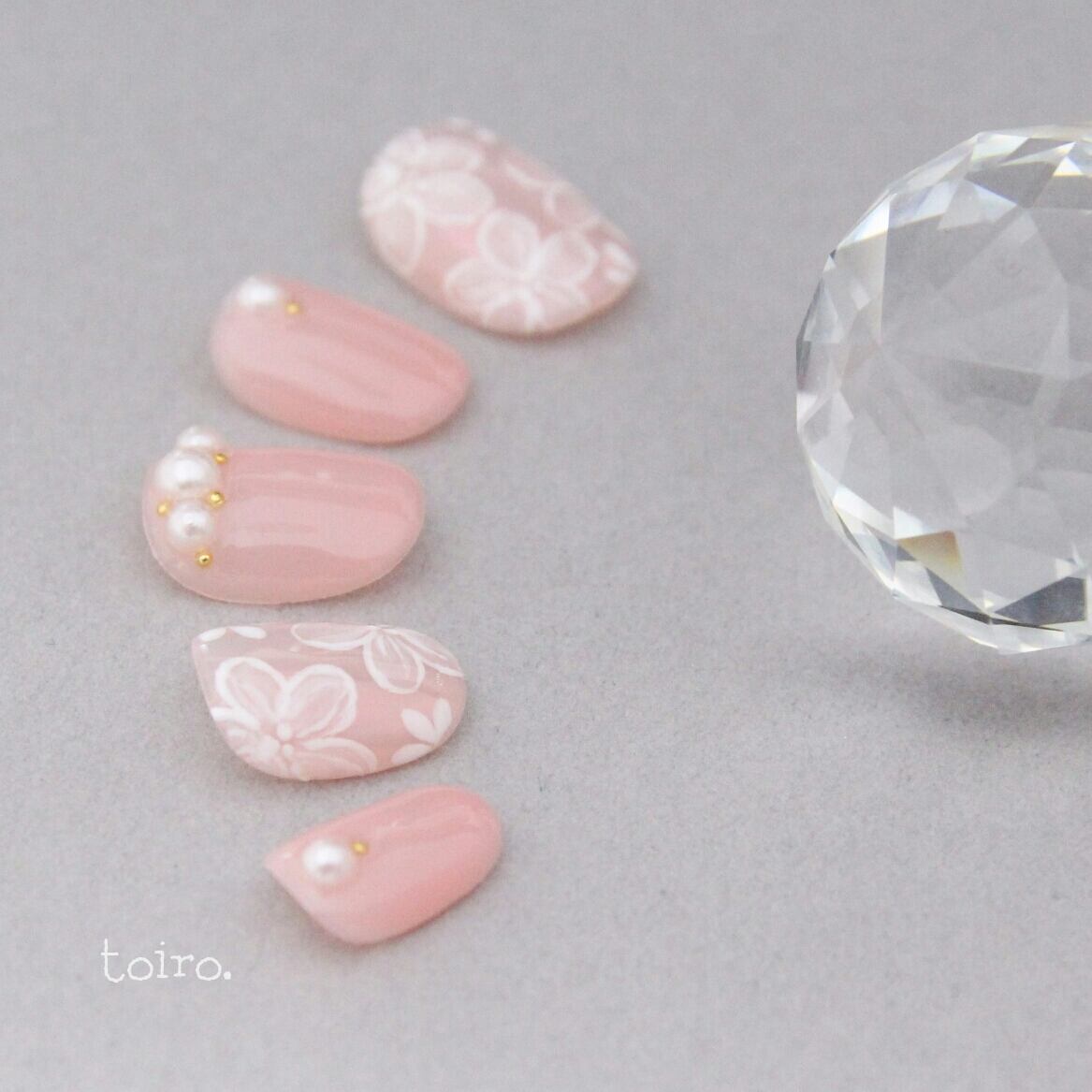 お花の下地はうっすらとピンク系のパールで光沢が出ています♪